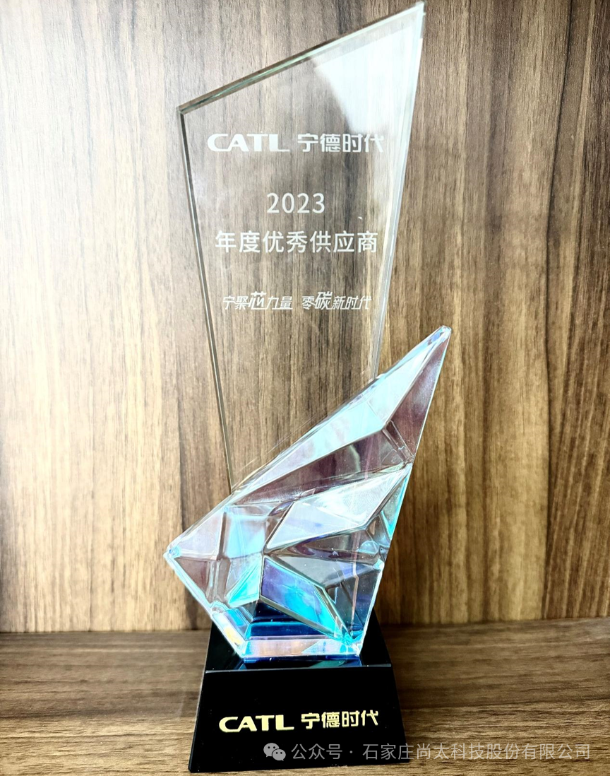 为表彰2023年为宁德时代高质量发展作出突出贡献的合作伙伴,大会为优秀供应商颁发了奖项。石家庄welcome-球速体育科技股份有限公司作为负极材料行业里唯一的供应商,荣获宁德时代“2023年度优秀供应商”奖项。